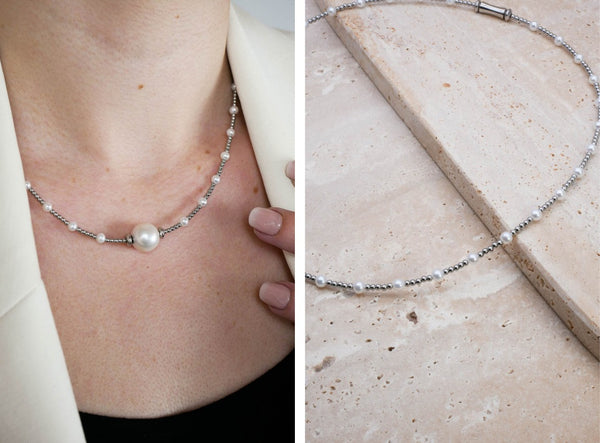 Sublimez votre cou avec nos fermoirs interchangeables en pierre pierres ou en perle d'eau douce, d'une beauté naturelle et authentique. Portez-les au-dessus de votre poitrine pour mettre en avant leur rareté et leur qualité d'exception ou attachez le Lien Sablier à l'arrière de votre cou pour révéler tout le charme de nos pierres ou perles de Cumingii.