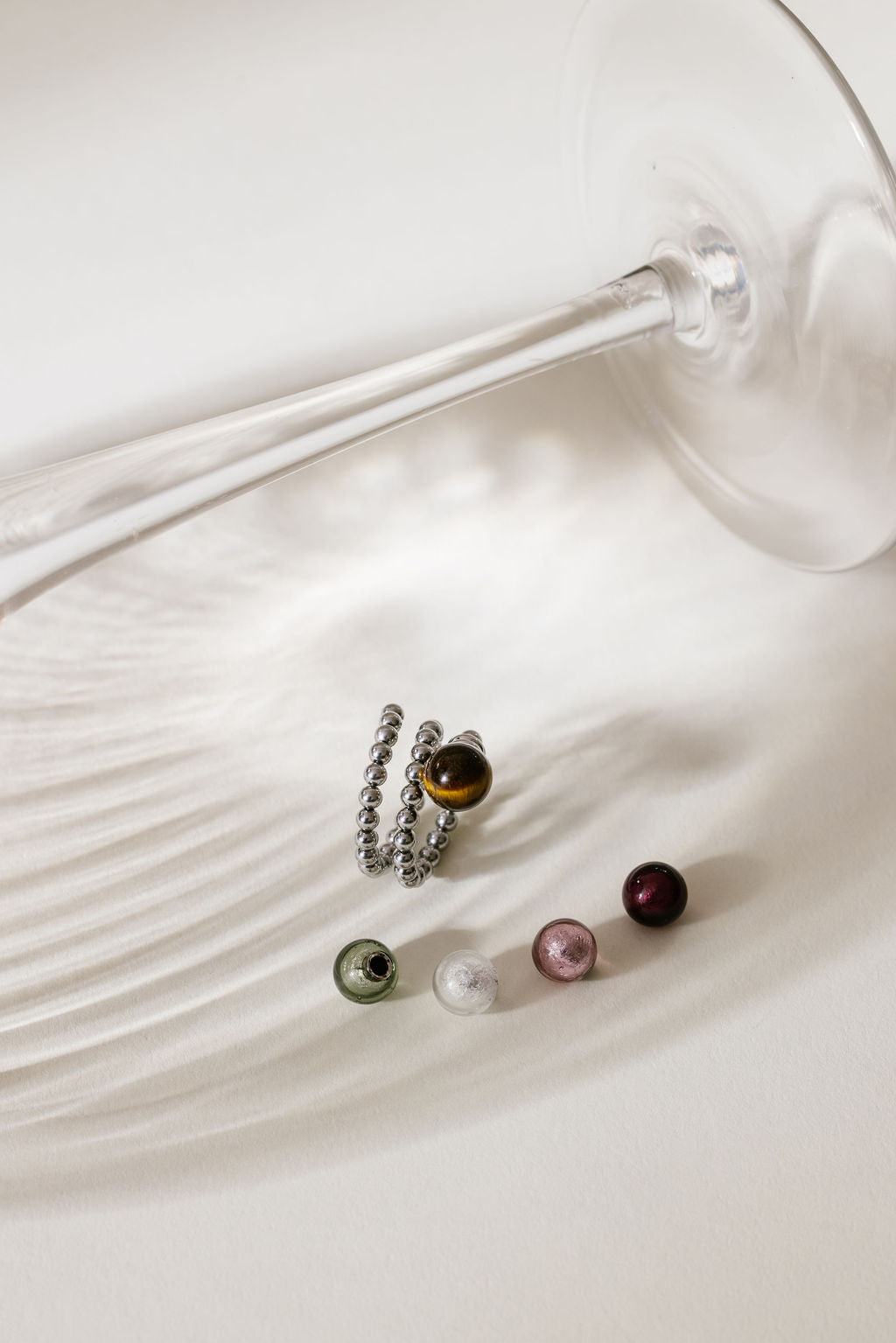 Bague modulable inventée et fabriquée à la main dans notre atelier en Suisse. Elle est composée de billes en acier inoxydable de 3 millimètres de diamètre et d’un fil en titane à mémoire de forme pour un confort parfait. Elle s'ajuste agréablement à la variation de taille de vos doigts grâce à la souplesse du titane.