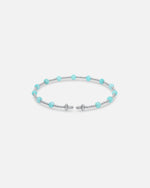 Les pierres sont assemblées sur un fil à mémoire de forme pour une tenue parfaite au poignet. Ce bracelet est modulable avec nos autres créations (Liens, Pierres, Murano) grâce à notre mécanisme de fermoir Harpoon breveté.