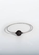 Bracelet modulable simple ou double tour composé de billes d'acier inoxydable de 2 mm de diamètre enfilées sur un fil d'acier à mémoire de forme. Ainsi, le bracelet s'adapte parfaitement à votre poignet. Grâce à notre mécanisme de fermoir Harpoon unique au monde, vous pouvez associer ce bracelet à tous nos fermoirs décoratifs (pierres à bijoux, verre de Murano, éléments en acier inoxydable). Ici combiné avec la pierre semi-précieuse Lave.
