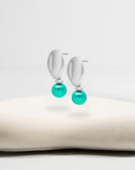 Garantiert allergiefreie Ohrringe aus Edelstahl. Ein in der Schweiz gefertigtes, austauschbares Schmuckstück, das Sie mit den austauschbaren Verzierungen Ihrer Wahl zusammenstellen können. Hergestellt in unseren Schmuckwerkstätten in Delémont und Lausanne. Hier mit austauschbaren Verzierungen aus Muranoglas mit einem in die Kugel eingelegten Blattsilber.