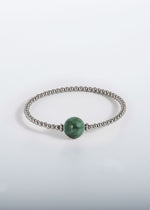 Modulares Armband, hergestellt in unserer Werkstatt in der Schweiz. Hergestellt aus 3-mm-Edelstahlperlen auf einem Formgedächtnis-Stahldraht für eine perfekte Passform am Handgelenk. Hier mit einem Aventurin.