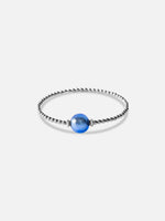 Modulares Armband, einfach oder doppelt gewickelt, hergestellt in unserer Werkstatt in der Schweiz. Hergestellt aus 3 mm großen Edelstahlperlen auf einem Stahldraht mit Formgedächtnis für eine perfekte Passform am Handgelenk. Hier komponiert aus Neptune Muranoglas und Silber.
