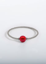 Modulares Armband zum einfachen oder doppelten Wickeln, hergestellt in unserer Werkstatt in der Schweiz. Hergestellt aus 3 mm großen Edelstahlperlen auf einem Stahldraht mit Formgedächtnis für eine perfekte Passform am Handgelenk. Hier aus rotem Muranoglas.