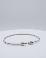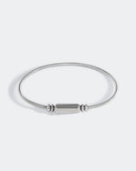 Modulares Armband mit einer einzigen Drehung, hergestellt in unserer Werkstatt in der Schweiz. Eine Edelstahlspirale mit 2,00 mm Durchmesser ist auf einem Stahldraht mit Formgedächtnis montiert und sorgt so für perfekten Sitz am Handgelenk. Dieses Schmuckstück ist besonders weich auf der Haut und zieht nicht an den Haaren. Hier mit einem Poésie Link aus Edelstahl.