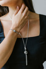 Sphère en véritable verre de Murano. Une délicate feuille d’argent se trouve à l’intérieur de la sphère pour lui donner des reflets uniques. Disponible en deux tailles: 12mm pour bracelet et collier 20mm pour sautoir La sphère de 20mm pour sautoir est légèrement plus claire que la version de 12mm pour bracelet et collier.