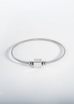 Bracelet simple tour modulable et manufacturé dans notre atelier en Suisse. Une spirale en acier inoxydable de 2.00 millimètres de diamètre est montée sur un fil acier à mémoire de forme, pour une tenue parfaite au poignet. Ce bijou a été étudié pour être doux sur la peau et ne pas tirer les poils. Ici composé avec un Lien cubique en acier inoxydable.