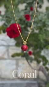 Collier modulable "recto-verso", manufacturé dans notre atelier en Suisse. Billes en acier inoxydable de 2.00 millimètres de diamètre montées sur un câble acier, pour une tenue parfaite à votre cou. Ce bijou a été étudié pour être doux sur la peau et ne pas tirer les cheveux. Ici composé avec un pierre semi-précieuse Corail.
